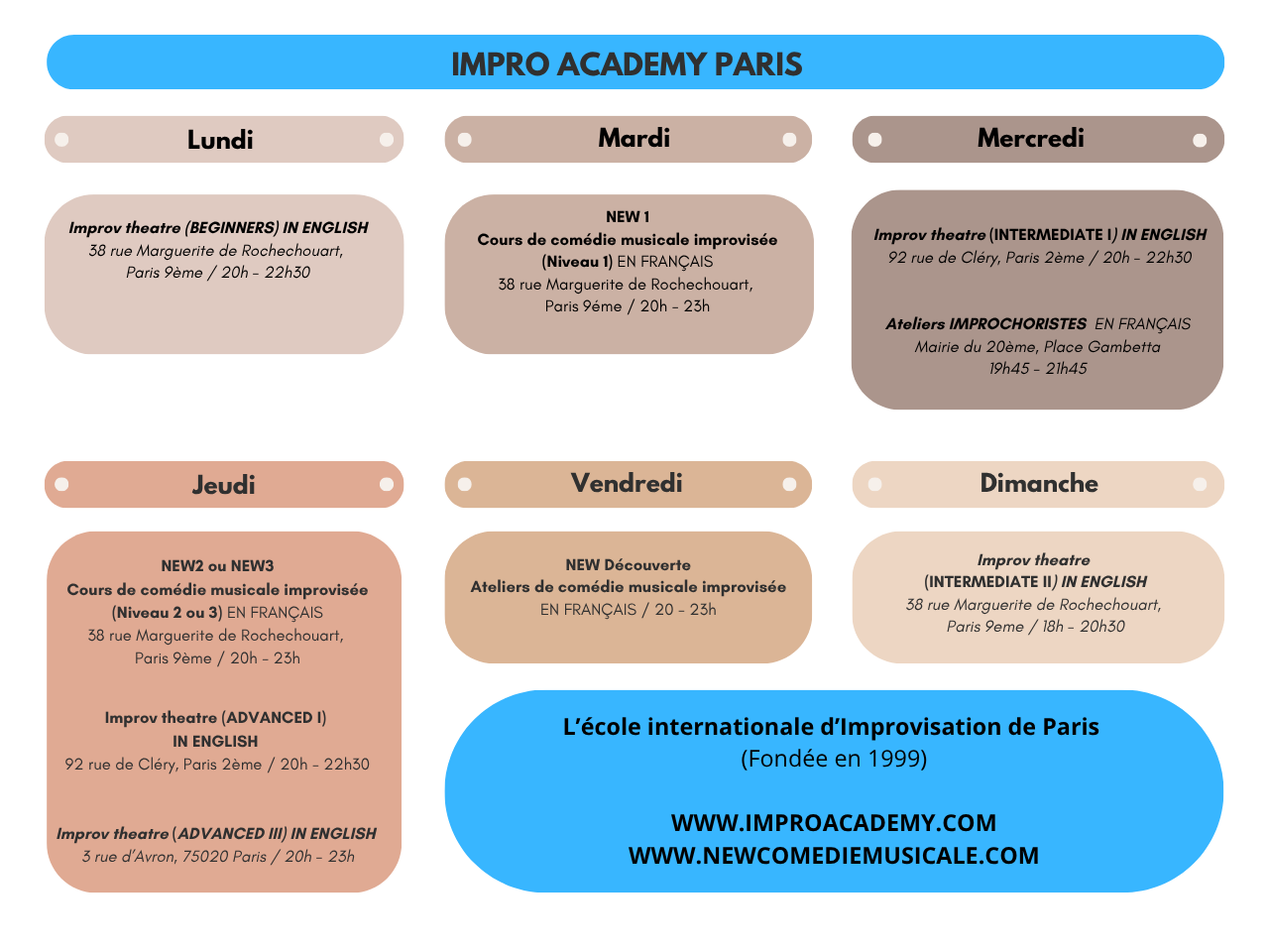 Impro Academy, fondée en 1999 par Florian Bartsch, est la première école internationale d’impro à Paris. Elle est à l’origine des Improfessionals, la troupe anglophone légendaire qui a fait connaître les grands maîtres de l’impro anglo-américaine en France.