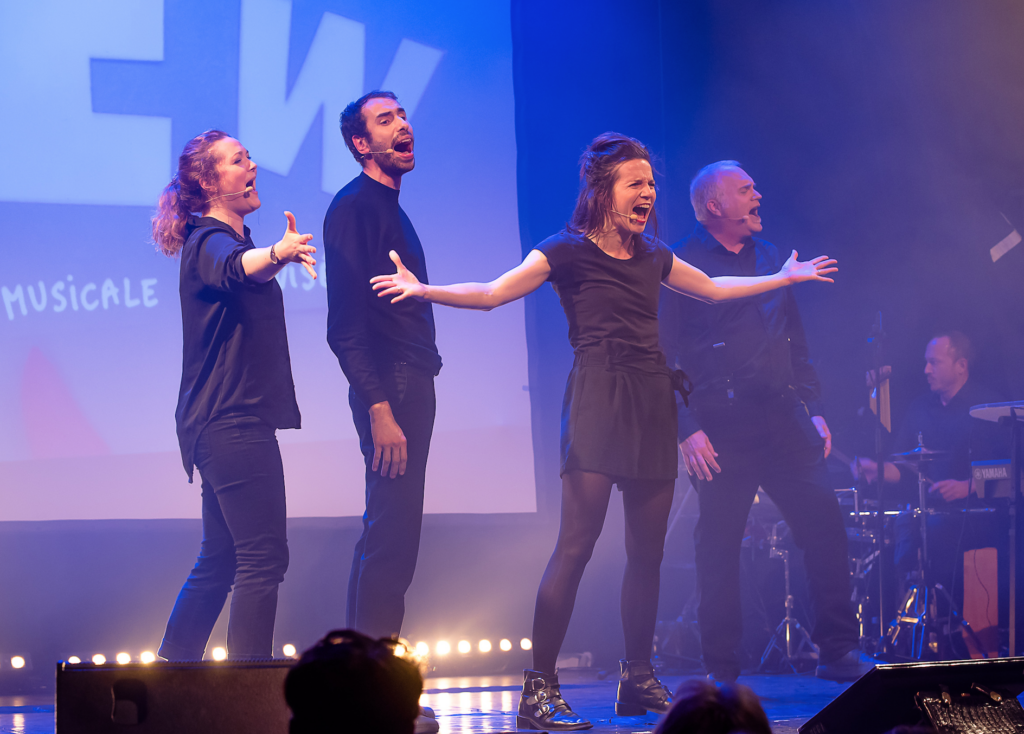 J’en ai 10 000, impossible de choisir ! Ce qui est inoubliable par exemple, c’est quand on se lance pour la première fois dans des choses qu’on a jamais entraînée devant un public, genre rapper en allemand dans un personnage de grand-mère fantôme…